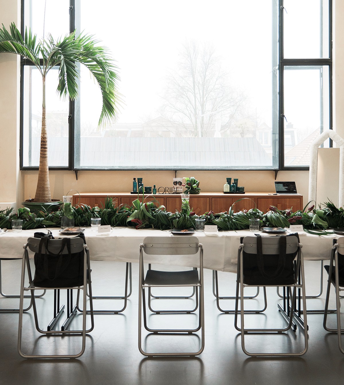 A 5.5-meter living grass tablescape stretched through the event space at Fosbury & Sons Amsterdam: